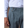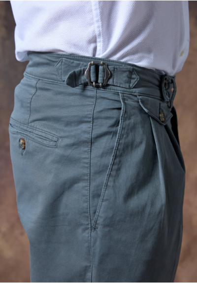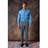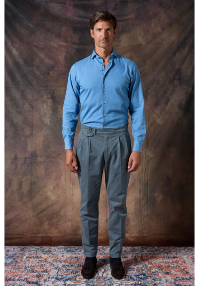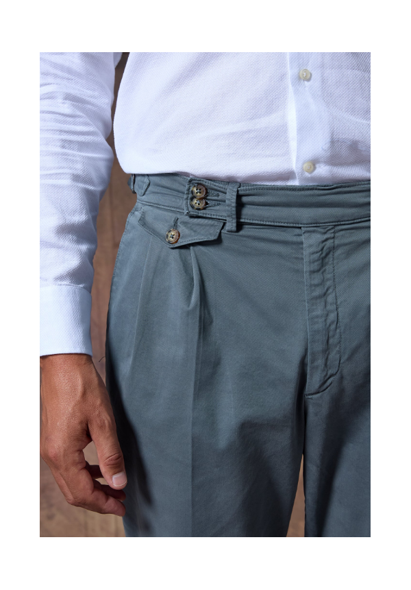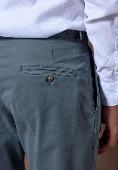Fabricados en España, estos pantalones combinan tradición y modernidad en cada detalle. El diseño incluye un cierre de dos botones desplazado y dobles pinzas que aportan una estructura elegante y un ajuste cómodo, haciendo de este pantalón una prenda esencial para cualquier armario masculino.